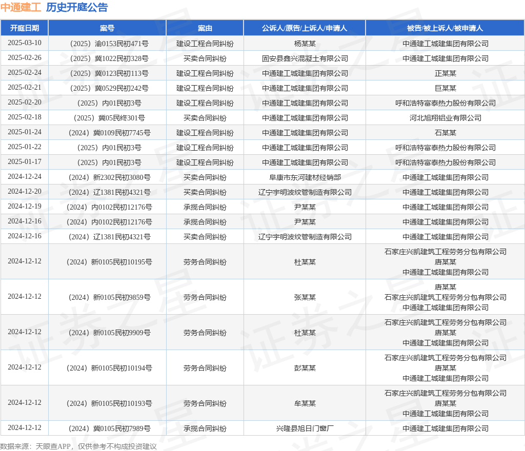 本站消息,根据天眼查APP显示,近日公布了一则中通建工城建集团有限公司作为被告/被上诉人的开庭公告,详细内容如下:
